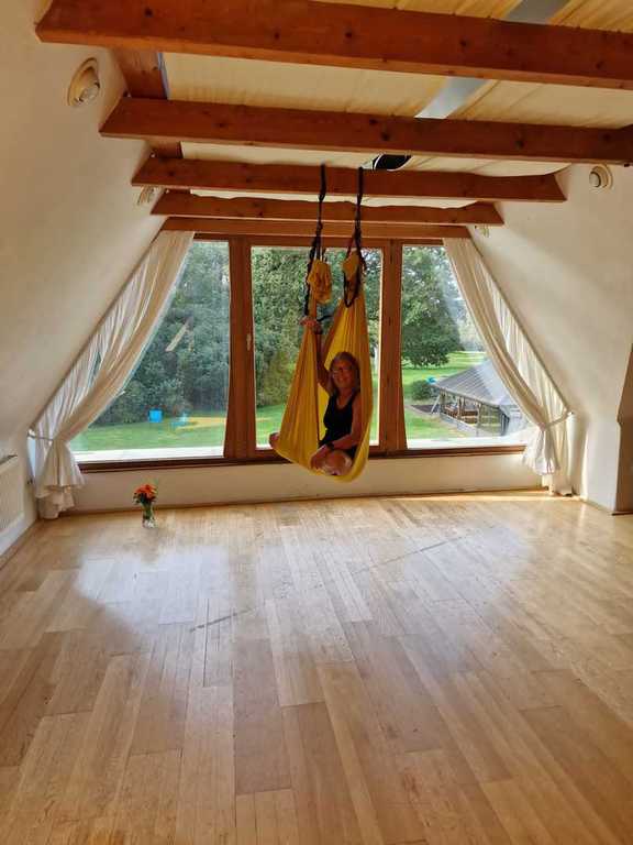 Ein ganzes Wochenende fliegen ! DANA®AERIAL Yoga auf dem Hof Oberlethe bei Oldenburg weitere Information hier