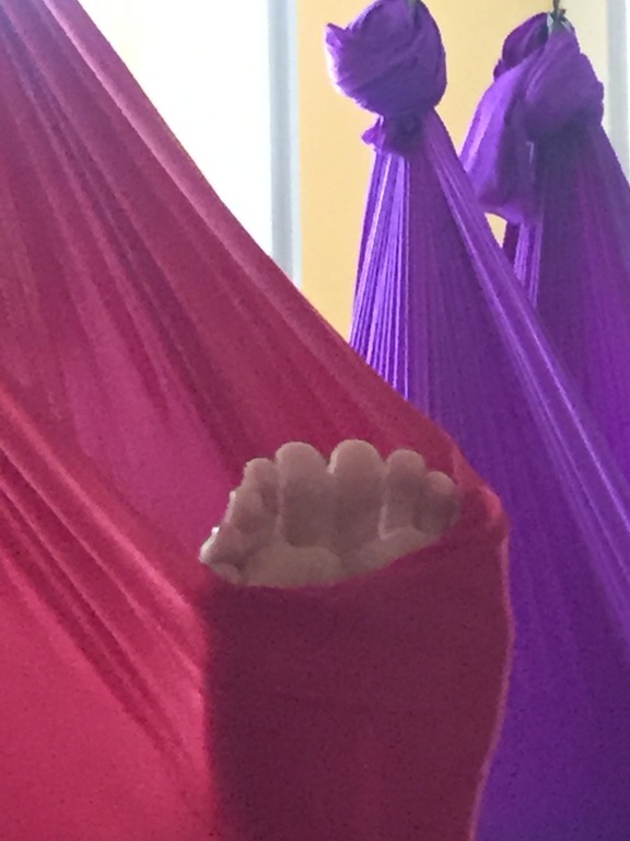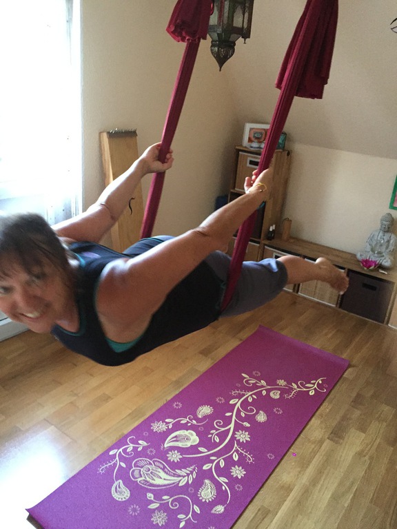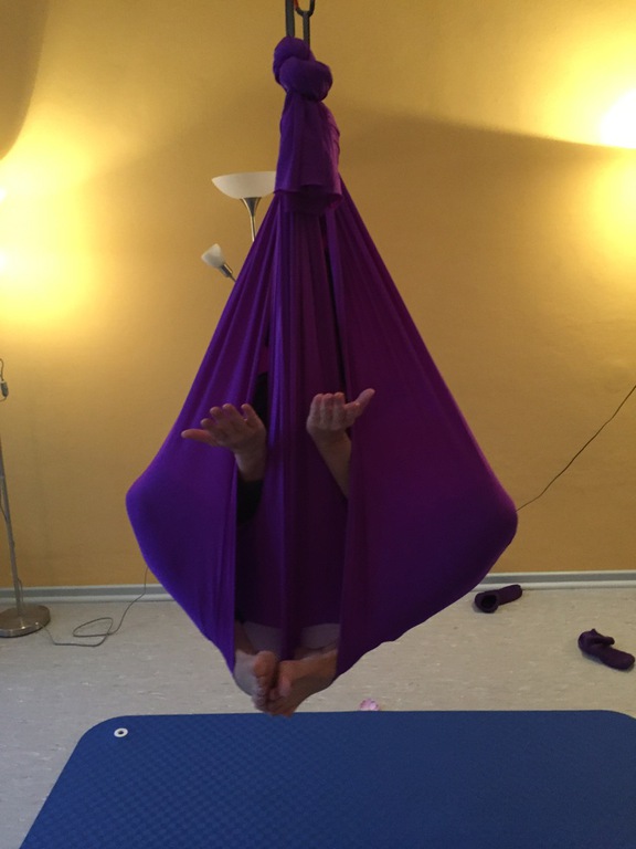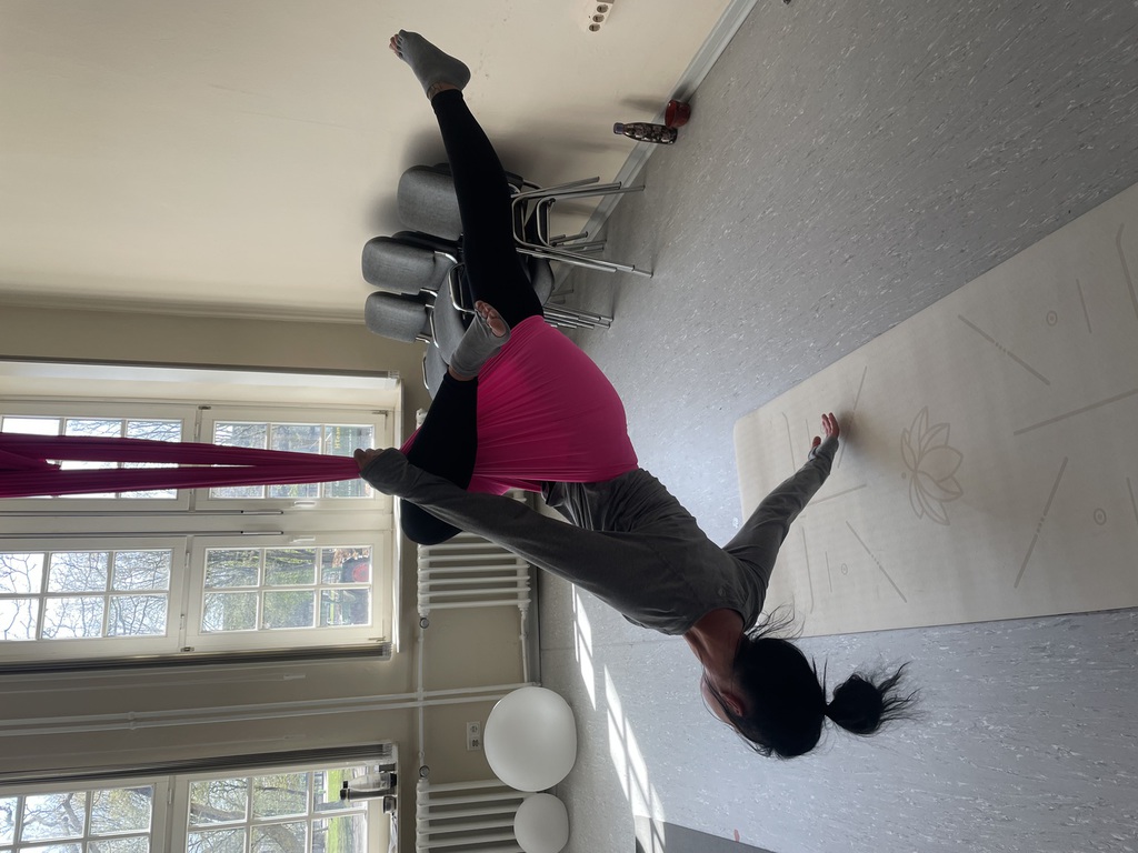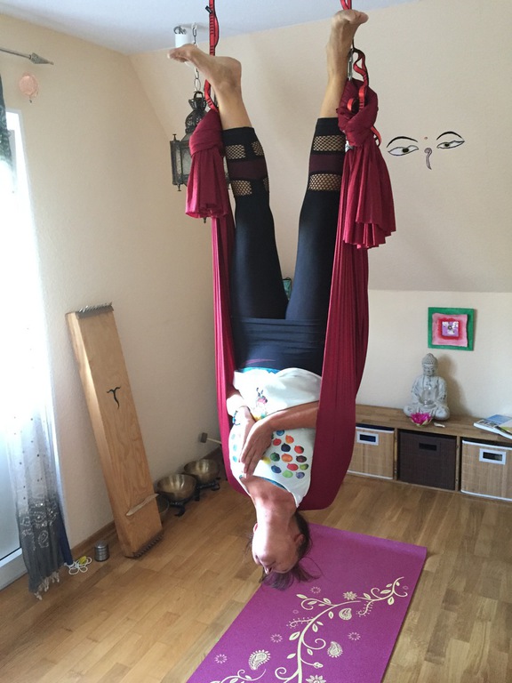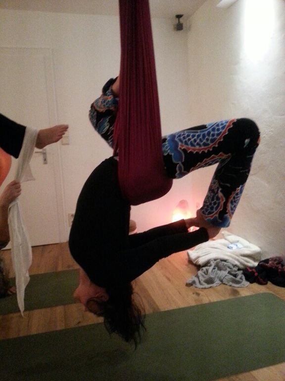 Aerial Yin - Tiefenentspannung und passive Aufdehnung das Tuch hängt 15cm tief.