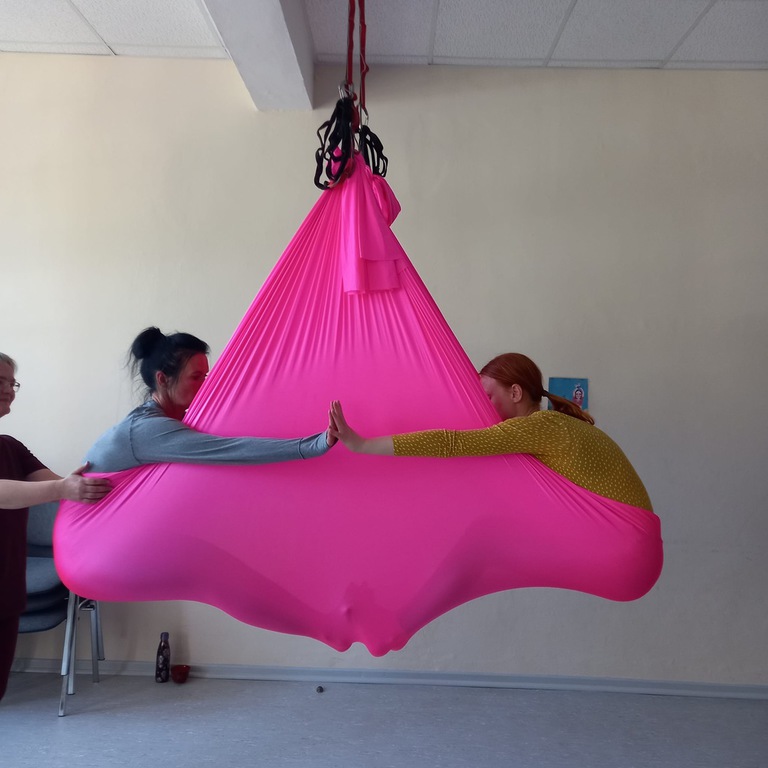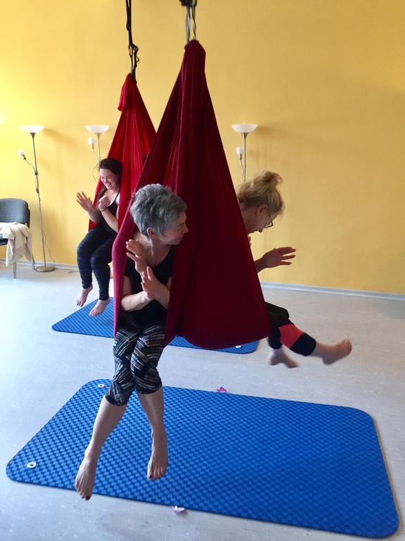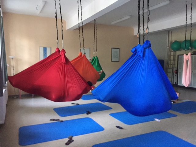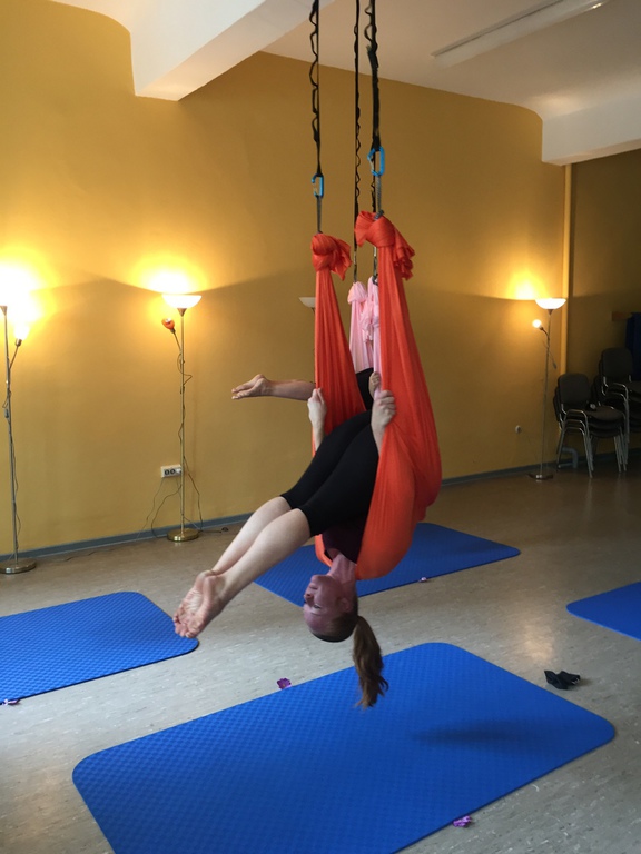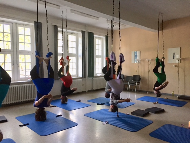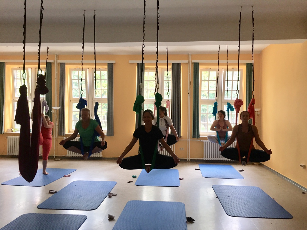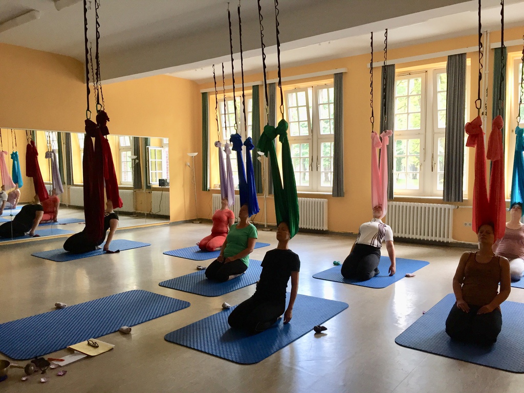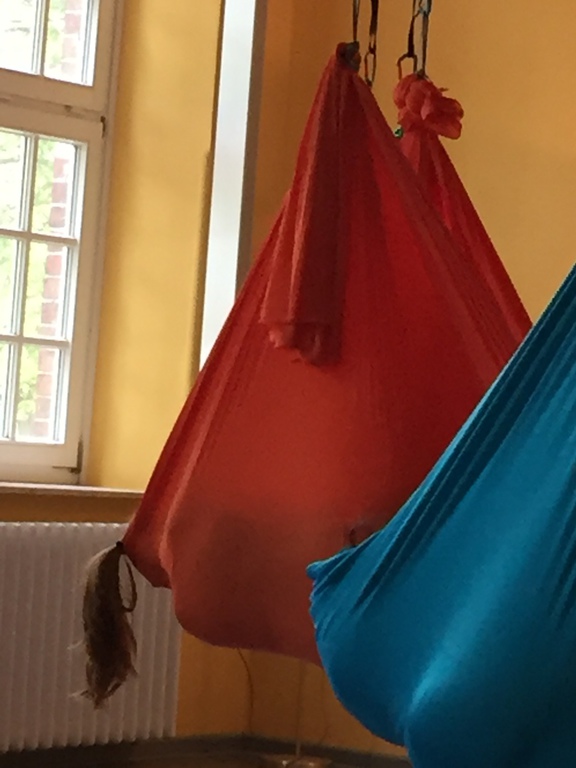 Aerial Workshop alles geht nichts muss - das Tuch hängt in Leistenhöhe sportlich und entspannend