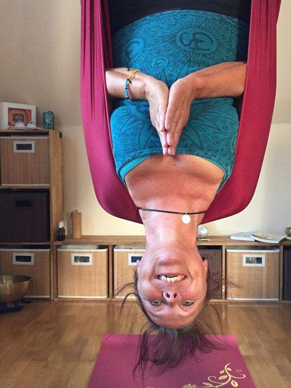 Aerial sanft schweben mit Klang& Gong: insgesamt ruhiger, keine Kopfüberhaltungen. Begleitet mit Affirmationen und Klanginstrumenten.