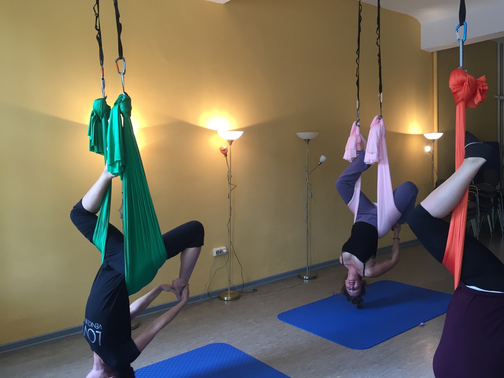 Dein Körper braucht etwas Zeit, um sich an die neuen Stellungen zu gewöhnen. Eine Grundfitness ist von Vorteil und ein bißchen Mut um auch mal kopfüber hängen zu wollen. Bist Du neugierig geworden und möchtest auf Tuchfühlung gehen ?